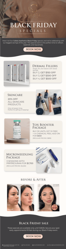 Indulge in our biggest savings of the year. Unbeatable offers on Dermal Fillers, Skincare, Tox Boosters, and Microneedling