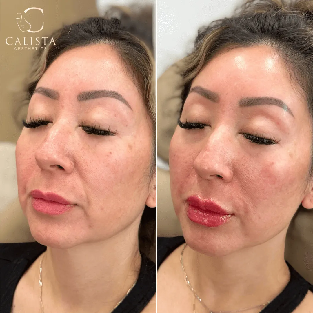 After: Mild swelling or bruising is possible and usually settles within a few days; final look refines by ~2 weeks. You’ll get simple aftercare (no heat or heavy workouts for 24–48 hours; avoid pressing the area).