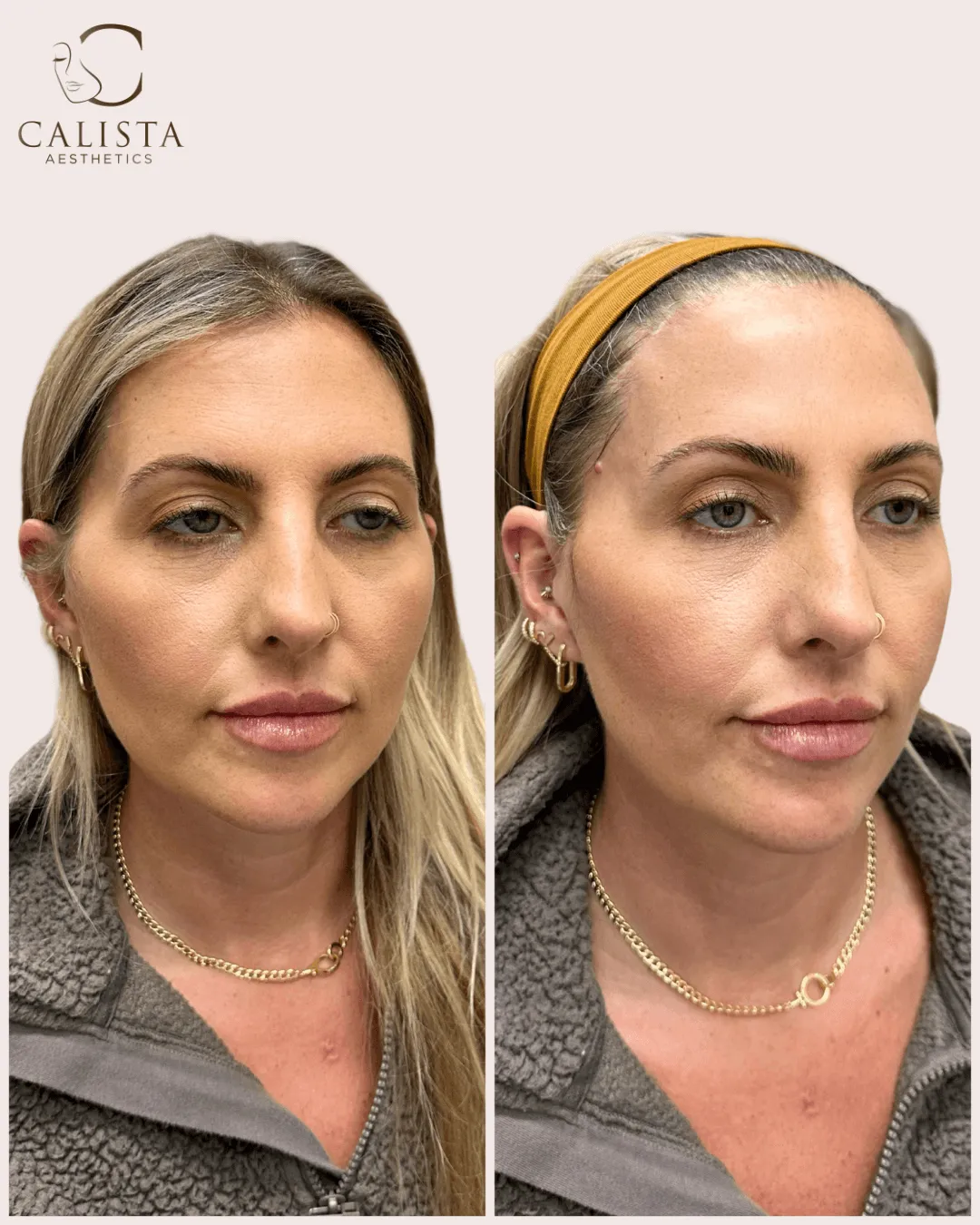We often start with an HA filler for flexibility. In some cases we may discuss collagen‑stimulating options. Your plan is personalized.